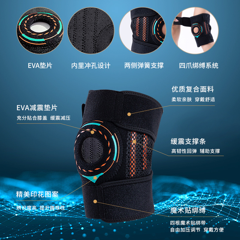 超工生产登山护膝透气打孔跑步骑行护膝弹簧加压支撑髌骨运动护膝